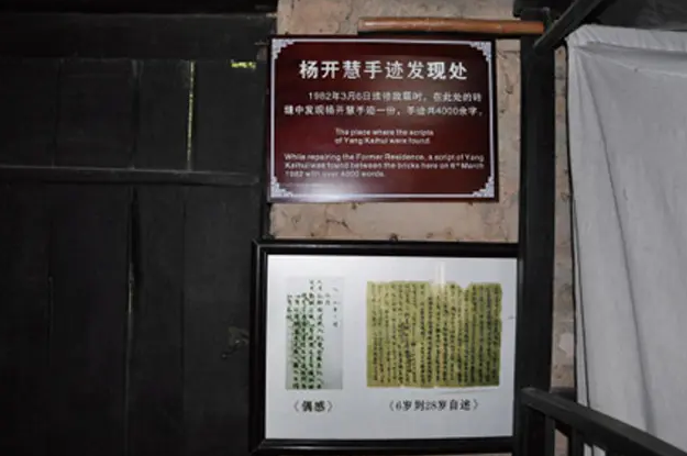 1982年3月10日,故居修缮工程正在紧张地进行中,工人们从杨开慧卧室后墙的齐楼板处往下拆。当拆除到第五行老砖时,一沓被厚重泥灰包裹着的整齐手稿出现在大家眼前。手稿共12页,其中自传体散文一篇3页,为官堆纸(古书的用纸种类,色黄),其余9页为深绿色方格毛边作文纸。行文用毛笔从右至左直行书写,共约4200字,行草字体,字迹清秀流畅,纸张发黄,略有残缺。