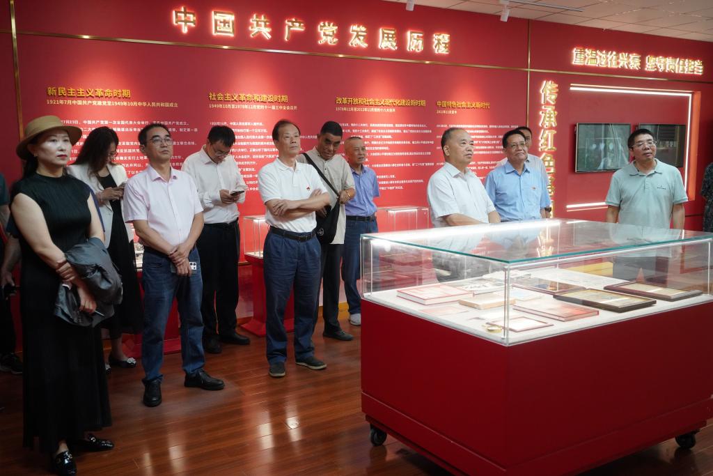 在中南大学红色文化创作与研究中心,全体与会成员在讲解下沿着传统文化、英雄文化和社会主义先进文化的主题文化墙和宣传栏进行了参观。