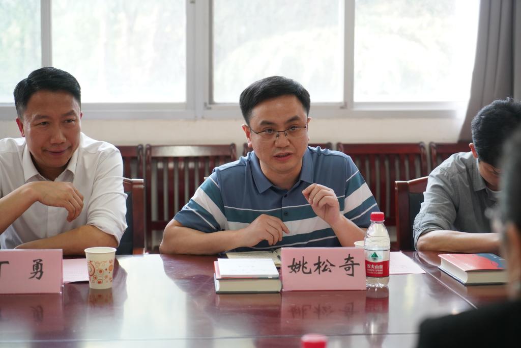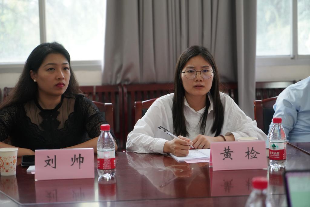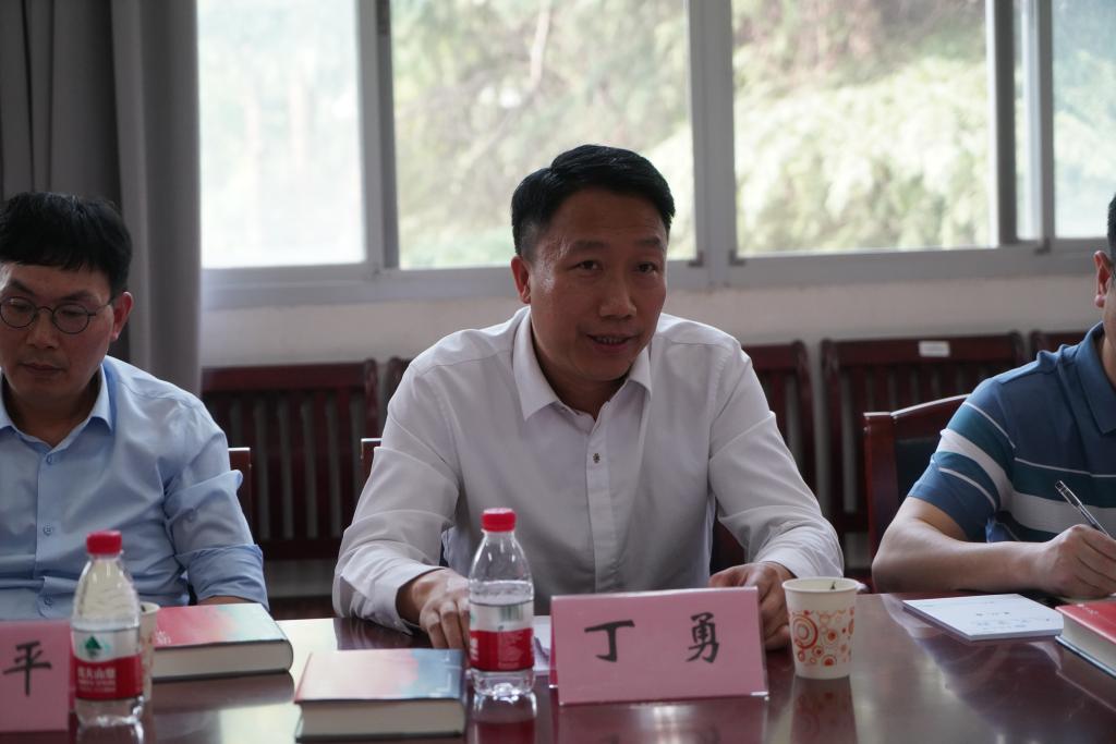 刘新少对丁勇一行表示欢迎,并从学院历史、学科建设与党建工作等方面展开了学院介绍。刘新少通过对本学院红色文化研究与教育的结合的分享,展示了学院党建品牌的建设情况。从学院内部的学术论坛与诗歌吟诵等活动,到与岳麓山、汨罗市相关文旅单位的长期合作,刘新少学分享了本院在红色文化研究和教育上面的结合。赵晓岑从基础常规出发,谈到党建工作和中心工作同部署同落实,强调实现两者有机融合的重要性。并分享学院重视基层工作的理念、大抓基层的鲜明的导向,这能扎实推进党支部五化建设走深走实。