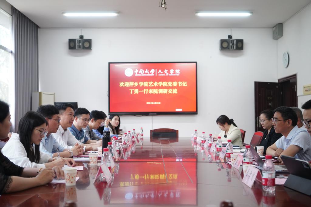 4月26日下午,萍乡学院艺术学院党委书记丁勇等一行赴我院学习交流。萍乡艺术学院党委书记丁勇,副院长姚松奇,教工支部书记李卫平,党政办主任彭震,学生第二支部书记廖可盺,辅导员黄检,湖南科技大学音乐系教师彭晔琴,人文学院党委书记罗军飞,副院长刘新少,党政办主任欧小芳,教工传媒党支部书记、传媒系副主任朱承璋,党政办副主任赵晓岑,学工办主任唐苗,学工办副主任易孝慈出席本次会议。会议由刘新少主持。