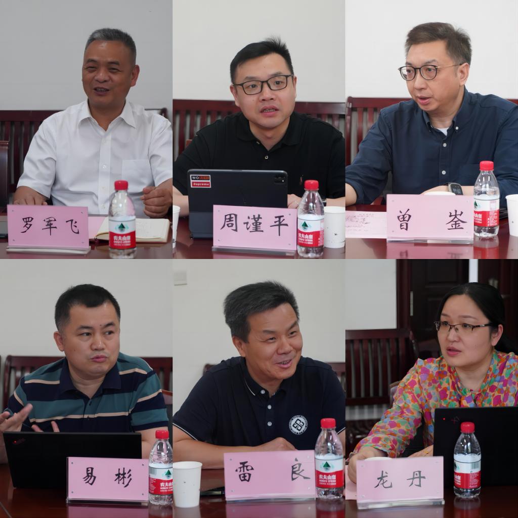 学院党委书记罗军飞,学院副院长、哲学学科带头人周谨平,学院副院长曾崟,中国语言文学学科带头人易彬,哲学系主任雷良,中文系主任龙丹就学科发展现状、学科建设取得成绩、学科下一步发展目标、落实学科提振举措、学科发展中遇到的困难进行了汇报。