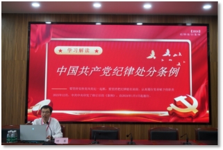 本科生中文党支部注重引入外部力量,扎实指导开展好党纪学习教育,特别是邀请院内外专家,通过专题党课全面提升党纪学习教育成效。6月14日,中南大学党委常委、副校长何军莅临我院,在文法楼329教室为支部全体同学讲授了“学习解读《中国共产党纪律处分条例》”主题党课,何军副校长从修订意义、主要亮点、如何践行等方面,对《中国共产党纪律处分条例》展开讲解。他强调,要牢记习近平总书记关于在全党开展党纪学习教育的通知及其相关的重要讲话和重要指示精神,深入领会修订《条例》的重点内容。同时,何校长号召支部全体成员养成纪律自觉,把他律要求转化为内在追求,弘扬党的光荣传统和优良作风,把增强党性、严守纪律、砥砺作风融入日常,化为习惯,在新时代新征程上做出新贡献。