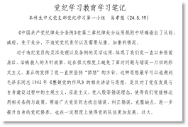 为贯彻习近平总书记关于党纪学习教育的重要讲话重要指示精神,落实党中央关于在全党开展党纪学习教育的重大部署,本科生中文党支部在校党委和院党委的统一部署安排下,以理论结合实践、用学习指导工作,有序开展党纪学习教育活动,取得了良好成效。