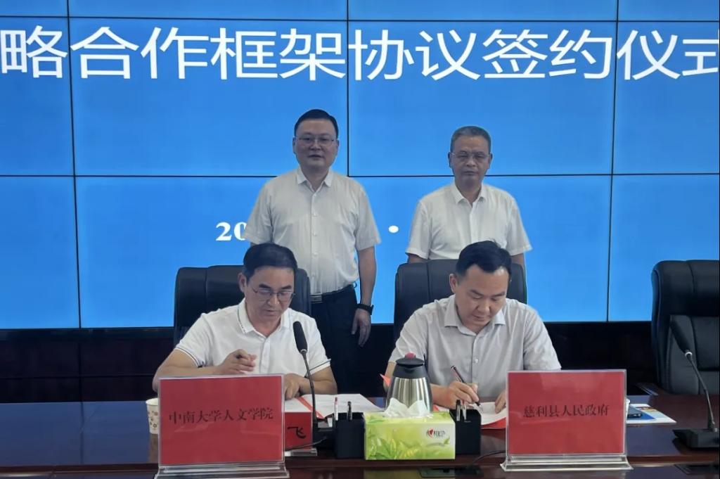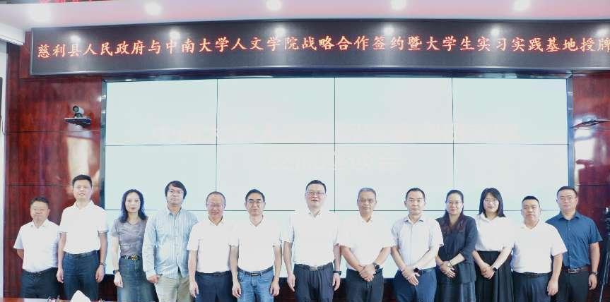 7月3日,中南大学人文学院与慈利县人民政府战略合作签约暨大学生实习实践基地授牌仪式举行。中南大学人文学院党委书记、教授罗军飞,副院长刘新少,慈利县县委副书记、县长朱爱民,副县长邹辉出席。参加会议的还有中南大学人文学院教工传媒党支部书记、传媒系副主任朱承璋,中文系副主任吴宝林,党政办主任欧小芳,慈利县组织部部长黄明军,慈利县第一中学书记邢方荣等人。