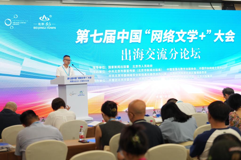 2024年7月15日,为期三天的第七届中国“网络文学+”大会在北京亦创国际会展中心落幕。本届大会以“网聚创造活力 文谱时代华章”为主题,由国家新闻出版署、北京市人民政府指导,由北京市委宣传部(北京市新闻出版局)、中国音像与数字出版协会、中国作协网络文学中心、北京市委网络安全和信息化委员会办公室、北京经济技术开发区管理委员会主办。网络文学产业界、学术界、政府机关代表400余人齐聚开幕式暨主论坛、创作评论分论坛、网络微短剧分论坛、动漫游戏与科技赋能分论坛、出海交流分论坛等5场论坛,共话行业热点。中南大学网络文学研究院受邀出席出海交流分论坛,研究院常务副院长徐耀明代表做主题发言,介绍《中国网络文学年鉴(2023)》的出版情况,并分享2023年度中国网络文学海外传播情况。